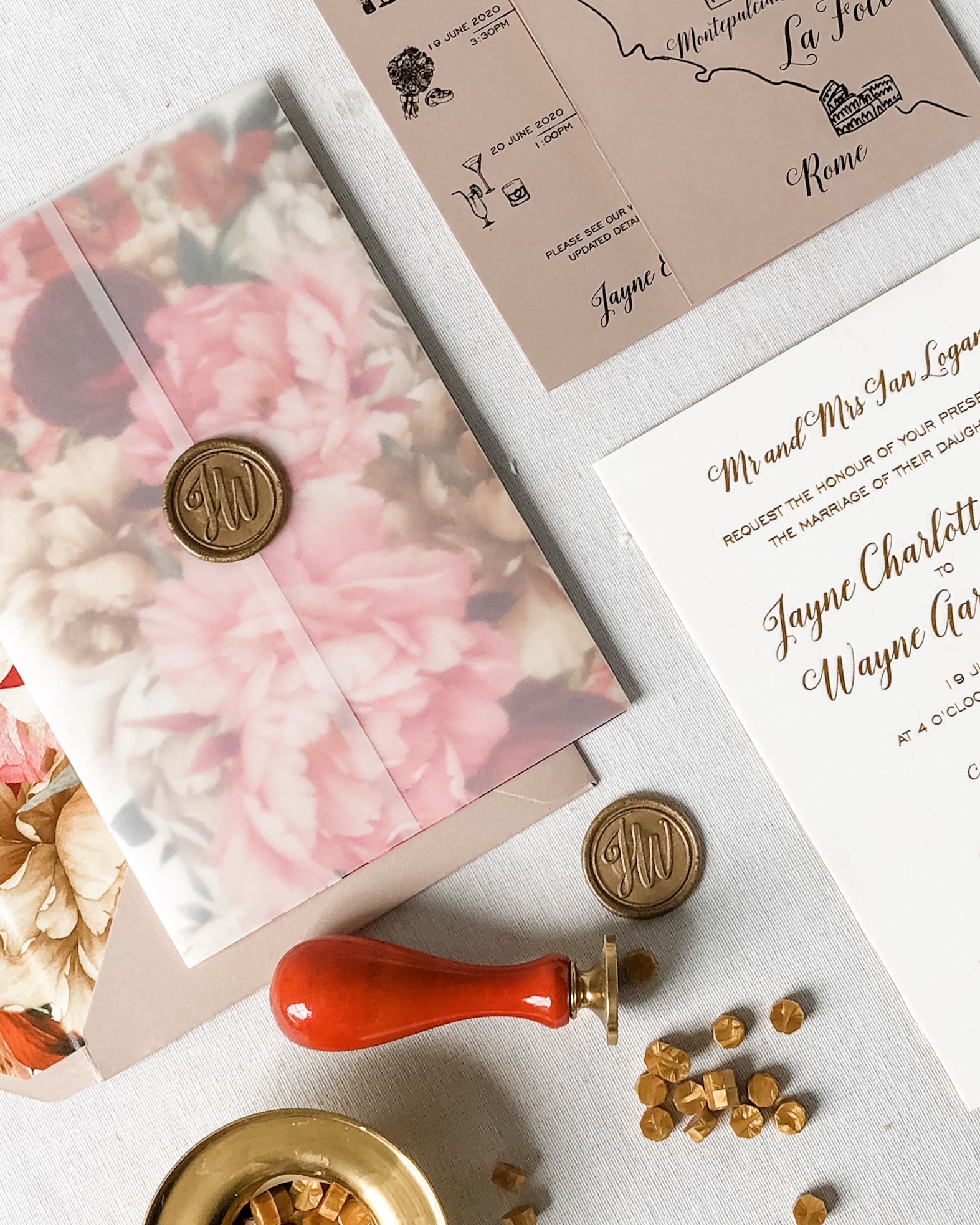 We are 100% bespoke wedding invitations and stationery designers, all our prices reflect the work that the client has commissioned to us and include our design service. Depending on your design, we will be able to give an estimate of the cost, so use those prices only as a reference to get an idea of what you should budget.