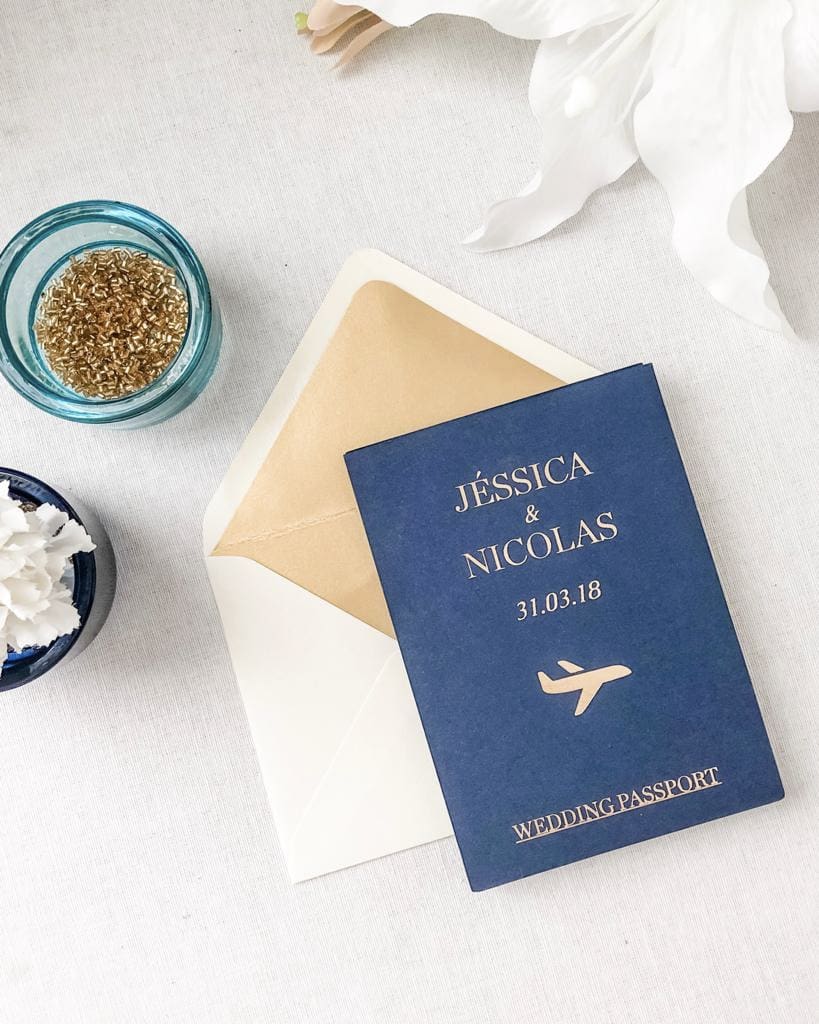 Jessica & Nicolas wanted something that screamed Destination Wedding! They wanted a passport wedding invitation, but different from what you can find off the shelves. So we suggested a different opening with lovely design elements.
